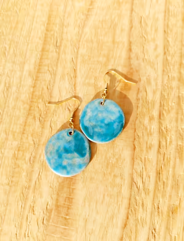 Türkis auf grauem Ton an goldenen Edelstahlsteckern – lass dich fließen.