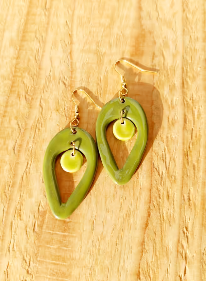 Grüne Tonkreation an goldenen Edelstahlsteckern – paradiesischer Traum