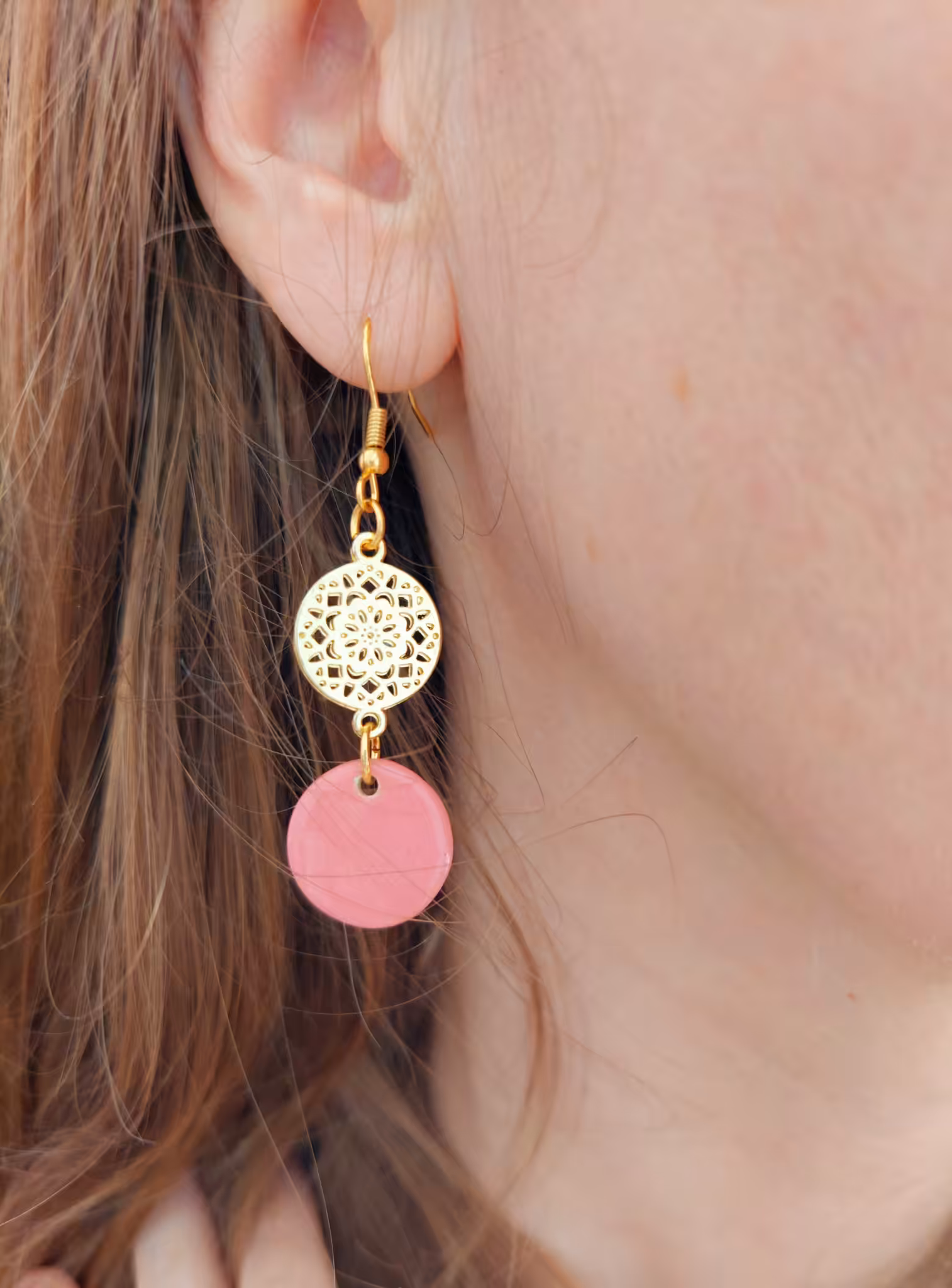 rosa Tonkreis an goldenem Mandala an goldenen Edelstahlsteckern – deine Intuition ist immer dabei
