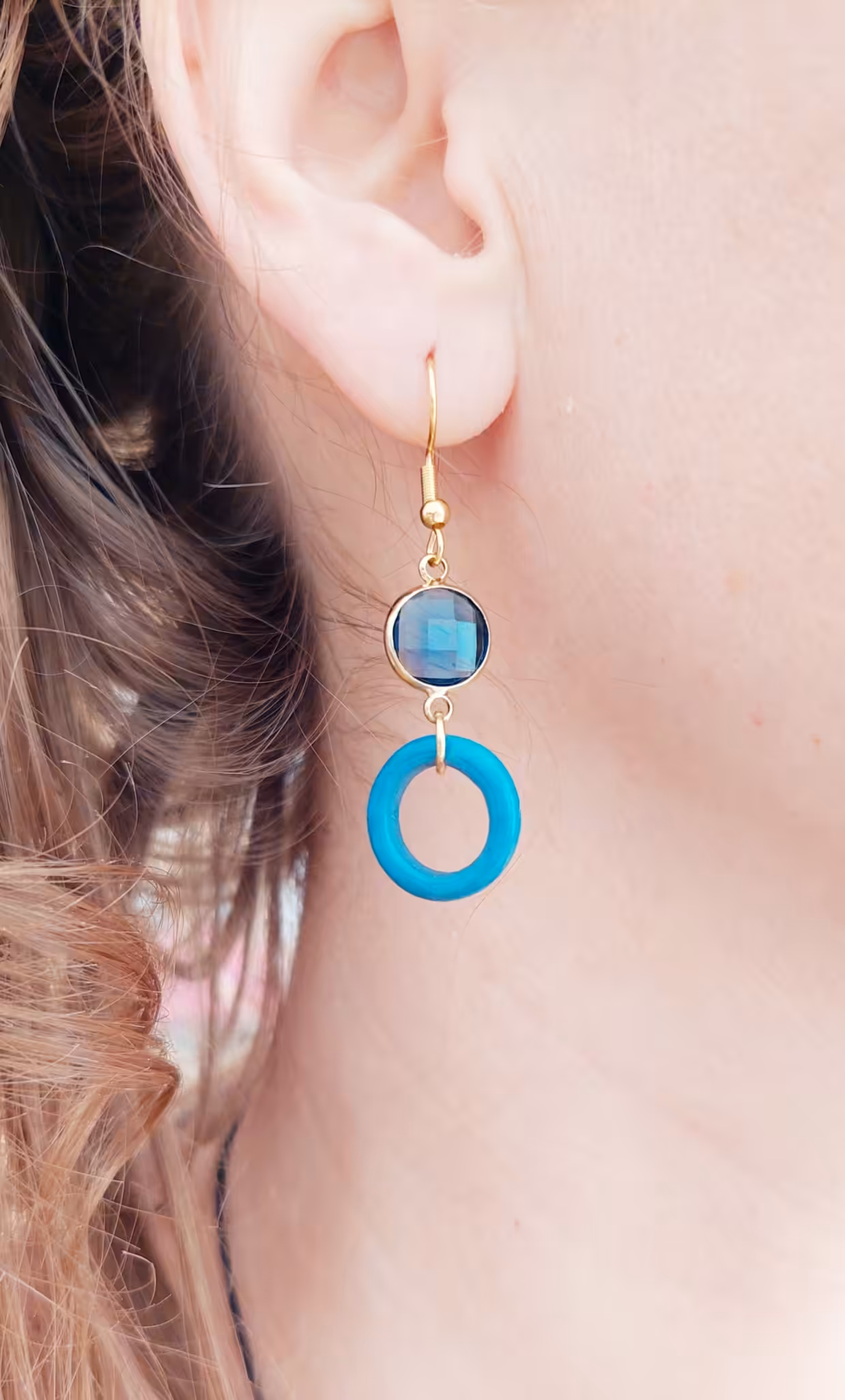 Blaue Tonringe mit geschliffenem Glasstein an goldenen Edelstahlsteckern – feel like a princess. WOW