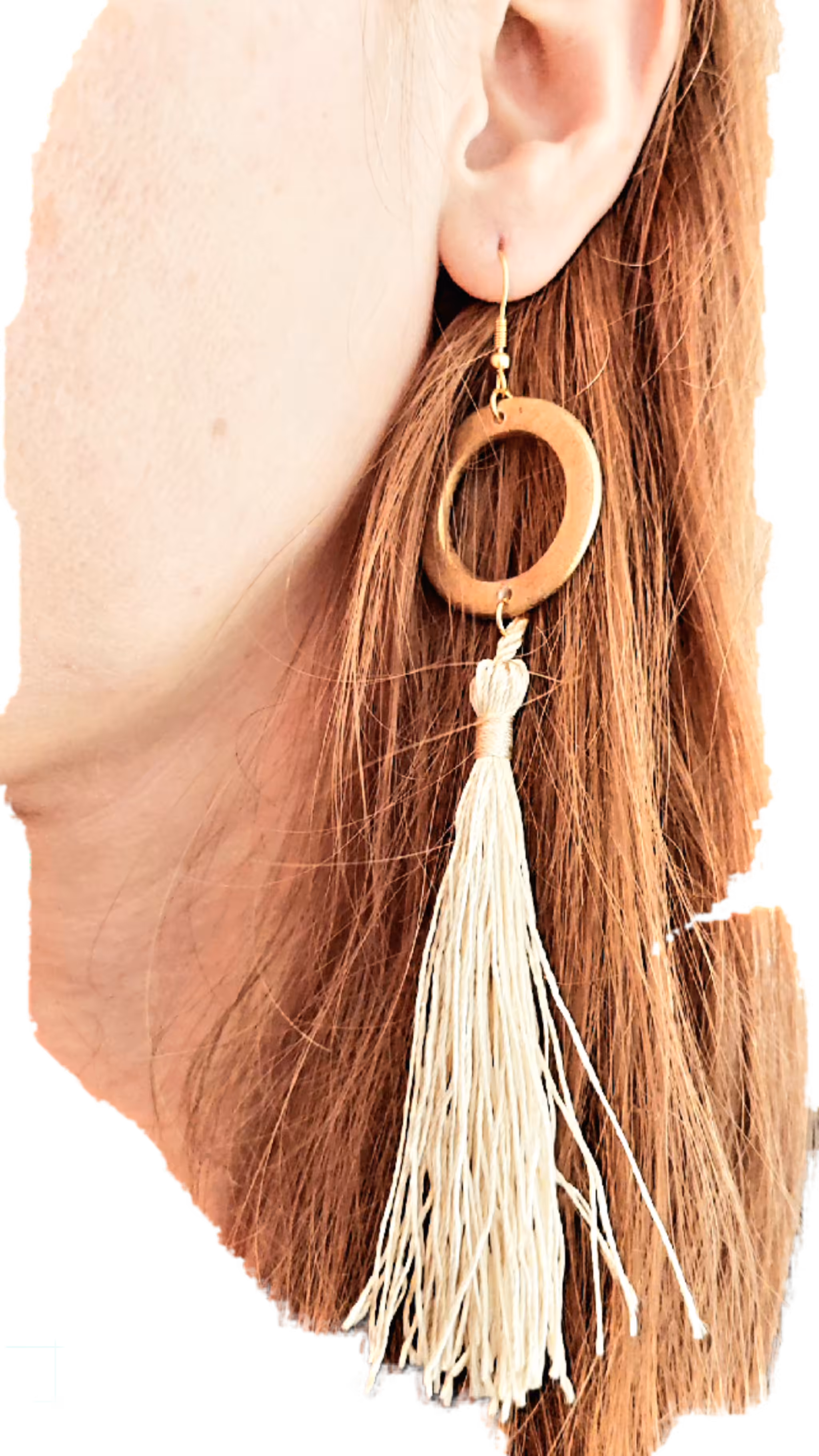 Blaue Tonringe mit blauen, langen Quasten an goldenem Edelstahl – fließe mit dem Fluss des Lebens!