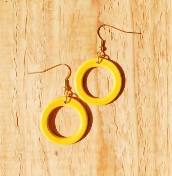 Gelbe Tonringe an goldenen Edelstahlsteckern – Ich lasse meine Strahlkraft leuchten.
