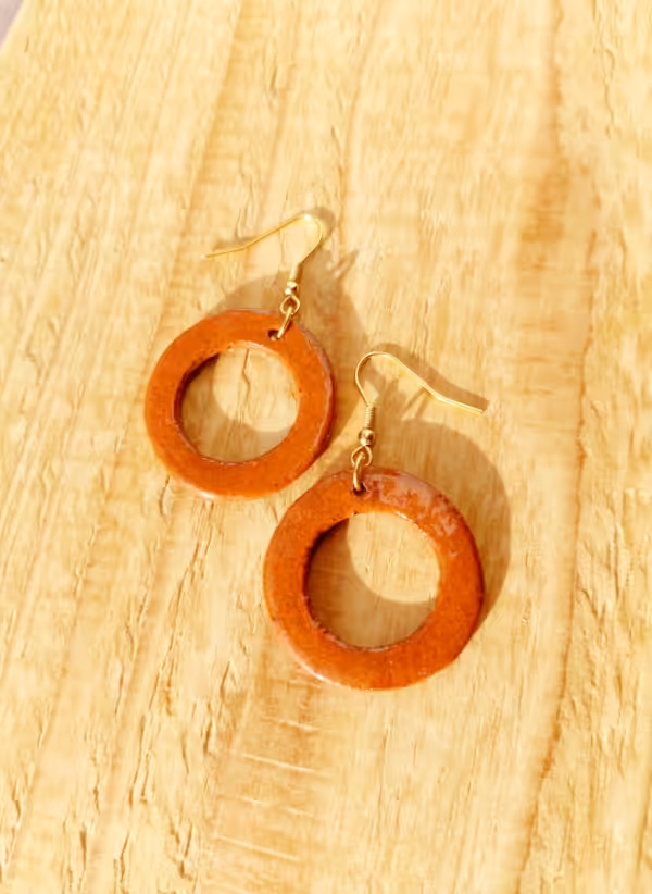 Roter Ton, transparent glasiert an goldenen Edelstahlsteckern – erdige Weiblichkeit