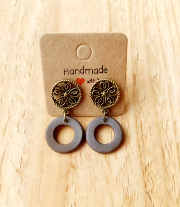Brauner Tonring an schönen Ohrsteckern in antikbronze – fühl die Verbindung mit Mutter Erde.